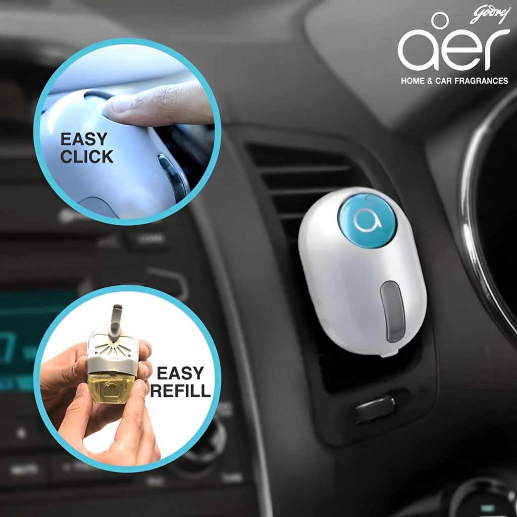 Meet the versatile aer Click. A designer car fragrance that’s as practical as it’s thoughtful, as good-looking as it’s fragrant and as long lasting as it’s easy to use. The easy click mechanism of this car freshener is designed to make sure your car is fragrant, whenever you want it to be. Powered by clever gel technology, our air freshener is completely spill proof, so you don’t have to worry about those bump roads. The modular design of our car fragrance diffuser enables you to simply replace the gel holder with any of the refill pack, whenever you need to. And what’s more – each refill pack lasts upto 60 days. Ensuring savings with every refill! Beautifully designed to sit on you car AC vent, aer Click comes in 6 unique designer fragrances – Cool Surf Blue, Bright Tangy Delight, Petal Crush Pink and Fresh Lush Green. You can choose the one that suits your taste or simply pick one that adorns your car interiors.